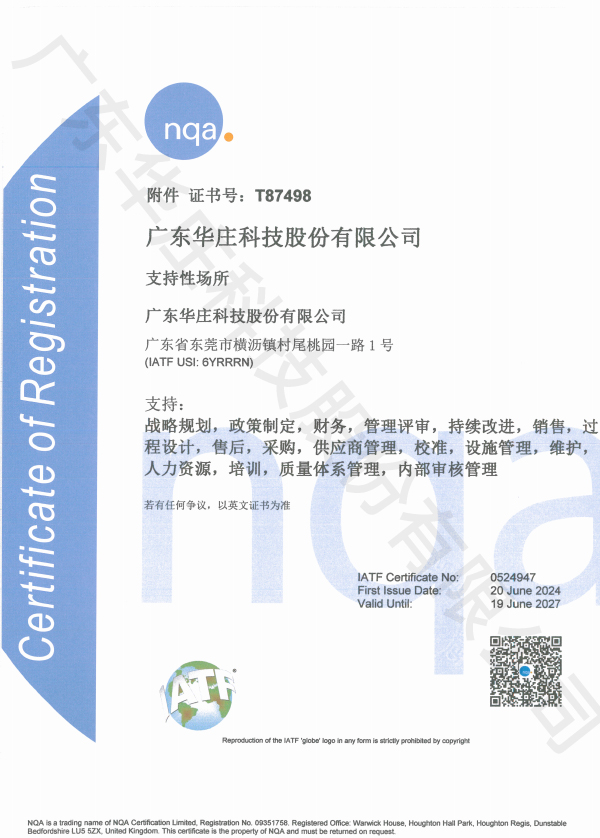 IATF 16949 廣東華莊(桃園廠)